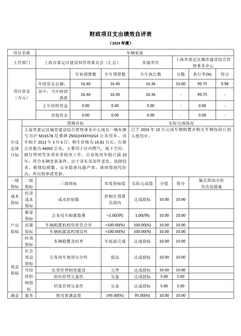 索引号: 00001434-9/2025-00000043 发布机构: 区建管委 发文日期: 2025年08月06日 主题分类: 绩效评价 关键词: 上海市嘉定区城市建设综合管理事务中心2024年度项目绩效自评表 发布时间:2025-08-06 浏览次数: 次 【字体:小 大】
